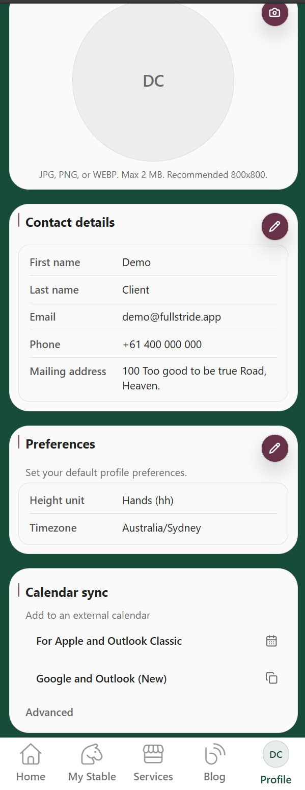 You can connect your Fullstride schedule to external calendar apps directly from My Profile.